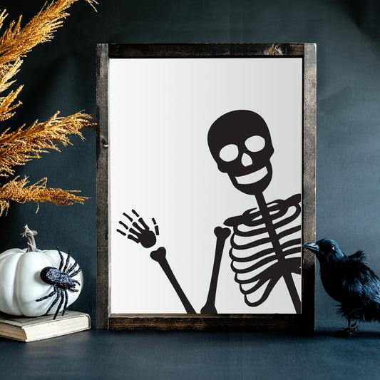 Peek-a-Boo Skeleton Halloween Wood Sign