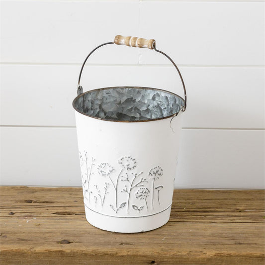 Sold outWhite Embossed Wildflower Bucket