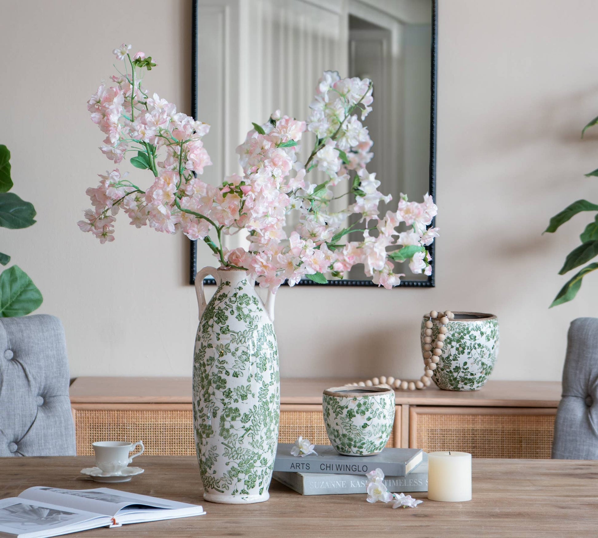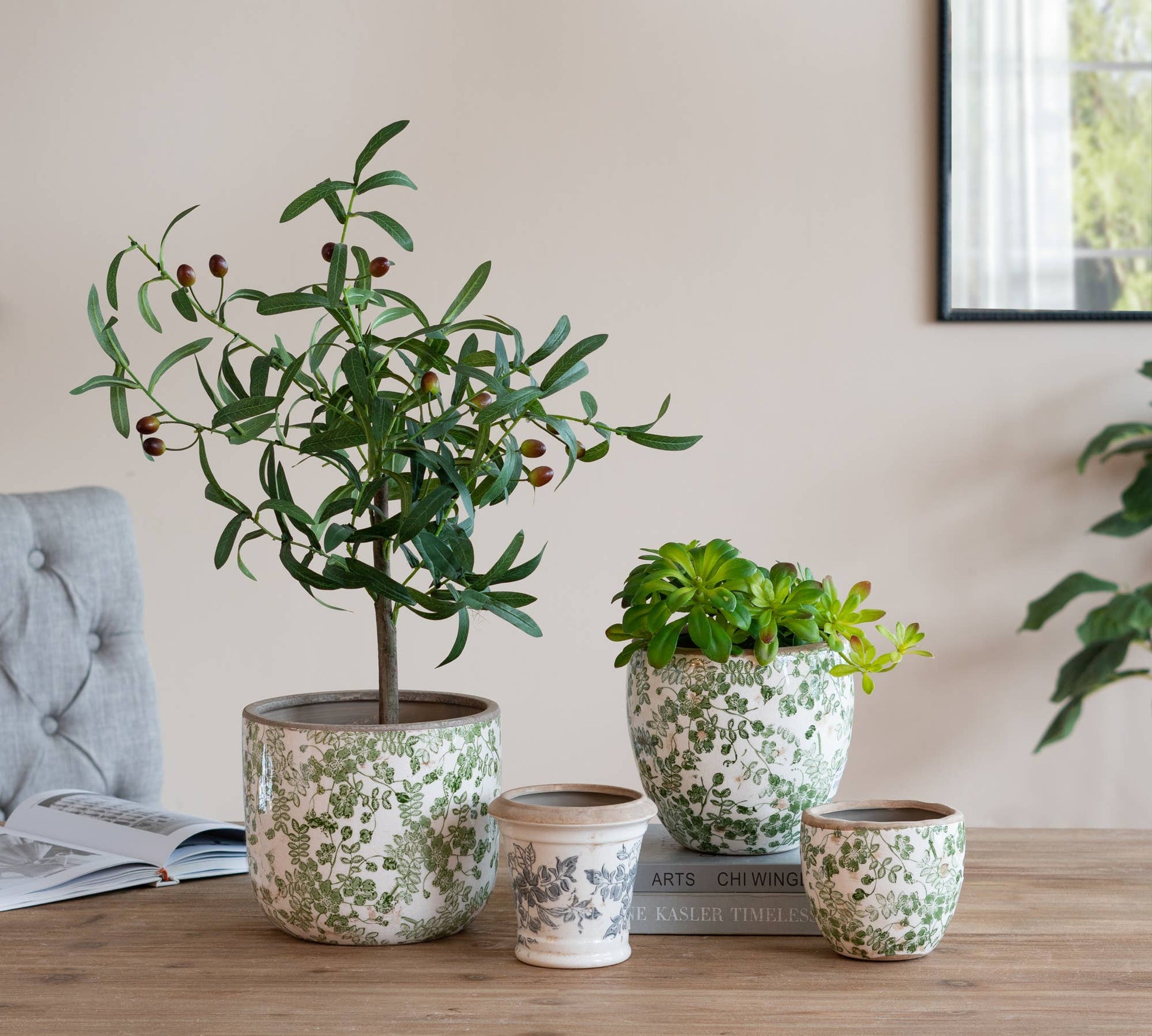 Bring timeless charm to your space with this vintage-inspired planter. Featuring delicate floral details in soft sage green, it's the perfect size for small succulents, herbs, or decorative botanicals. At 5x5x4.5 inches, it fits snugly on shelves, desks, or windowsills without taking up much room. The classic aesthetic pairs beautifully with modern or traditional décor, making it an easy way to add a touch of garden-inspired elegance to any corner of your home.