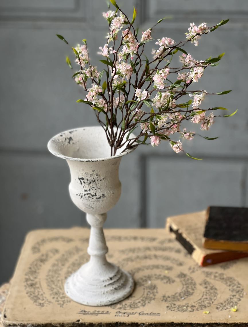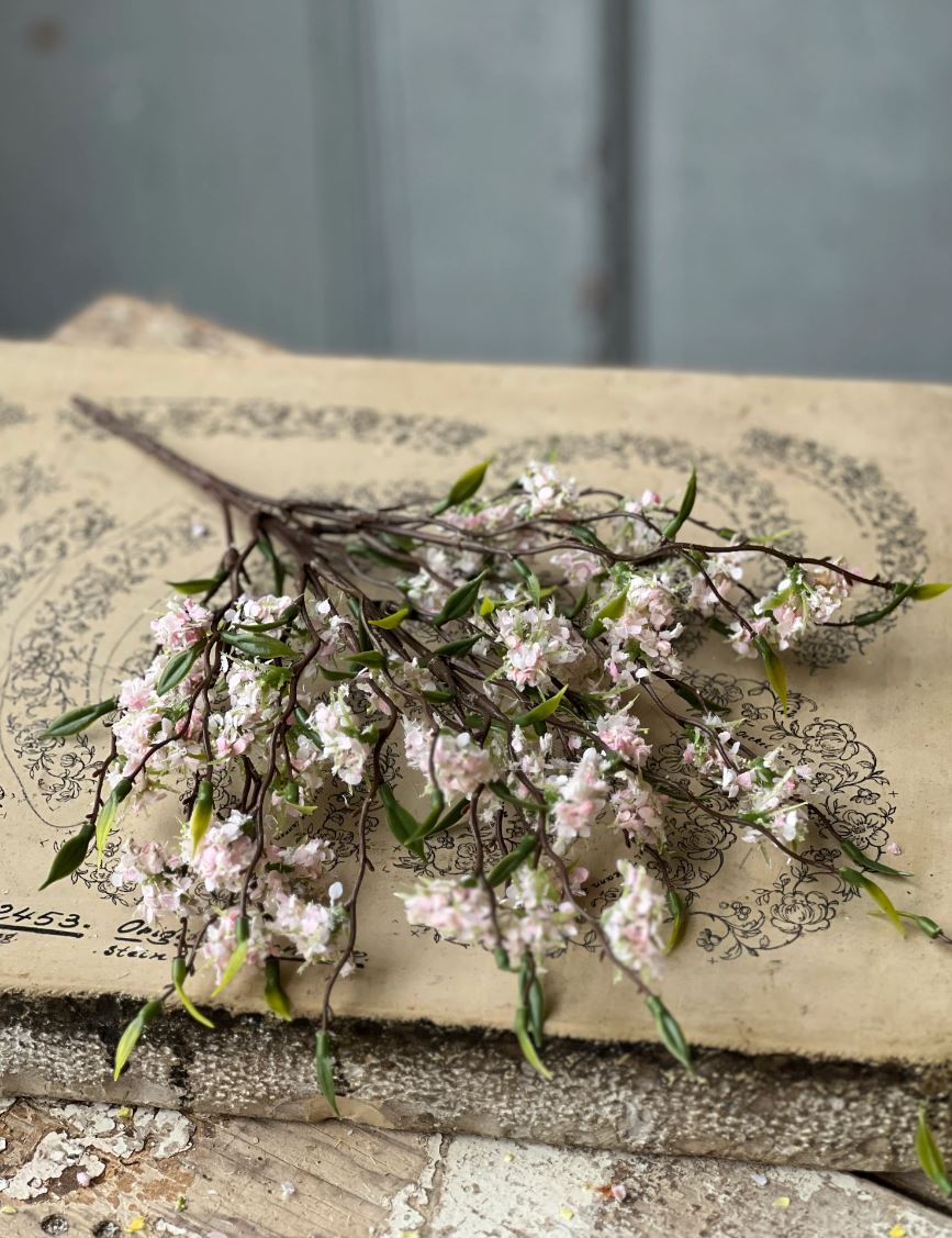 Unique clusters of petals and tiny bubble berries dot branching stems peppered sporadically with green leaves. Works well as a stand alone floral, but can also be easily paired with other items.