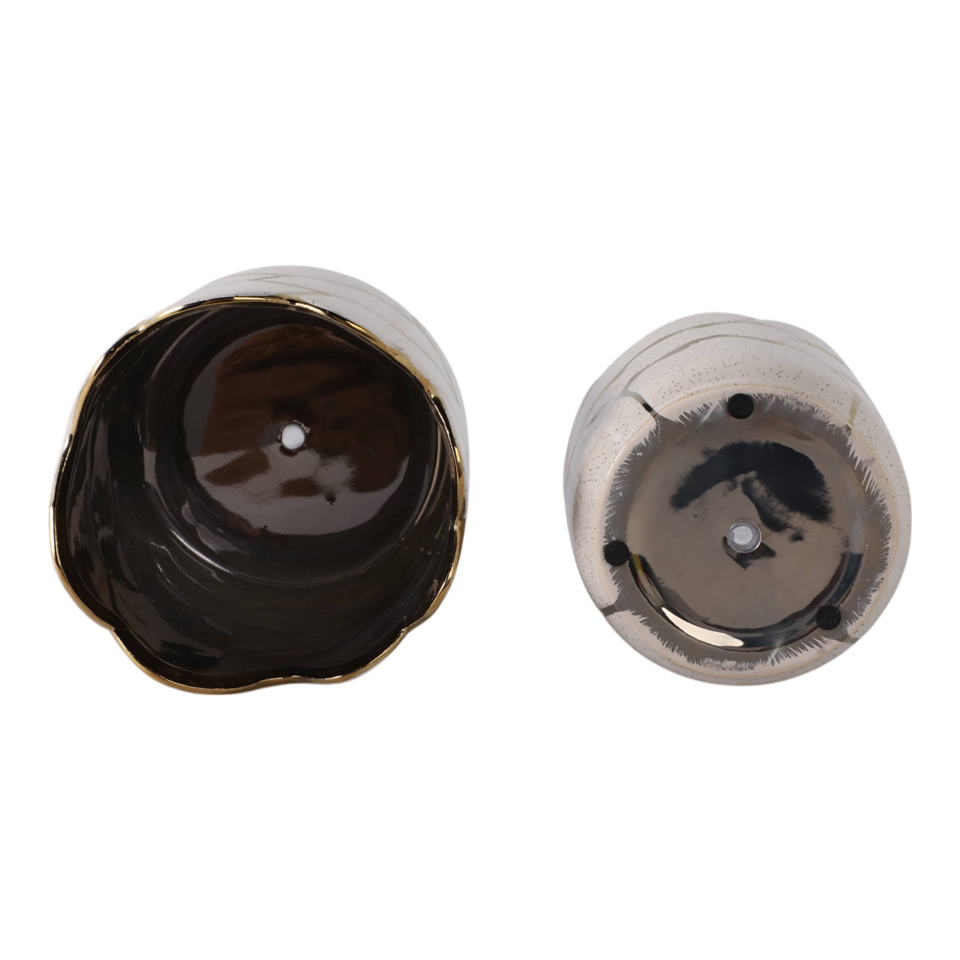 Featuring a sculpted scalloped edge and glossy gold detailing, this gold and white ceramic planter set adds sophisticated charm to any home or garden decor with luxurious visual texture and modern flair.