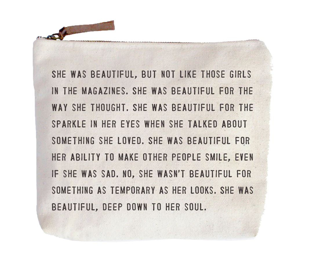 This canvas zip pouch is perfect for organizing small items in your daily life. The durable fabric is held with a leather zipper tab and decorated with an inspirational quote for your organizing needs. Keep everything in your purse or bag organized with these canvas zippered pouches so you never lose anything again. Whether you plan to use these bags for travel organization or as a canvas makeup bag, we know you’ll find this to be the perfect pouch for you.